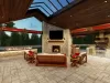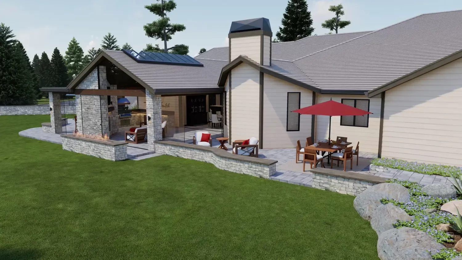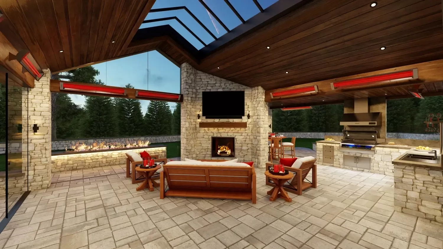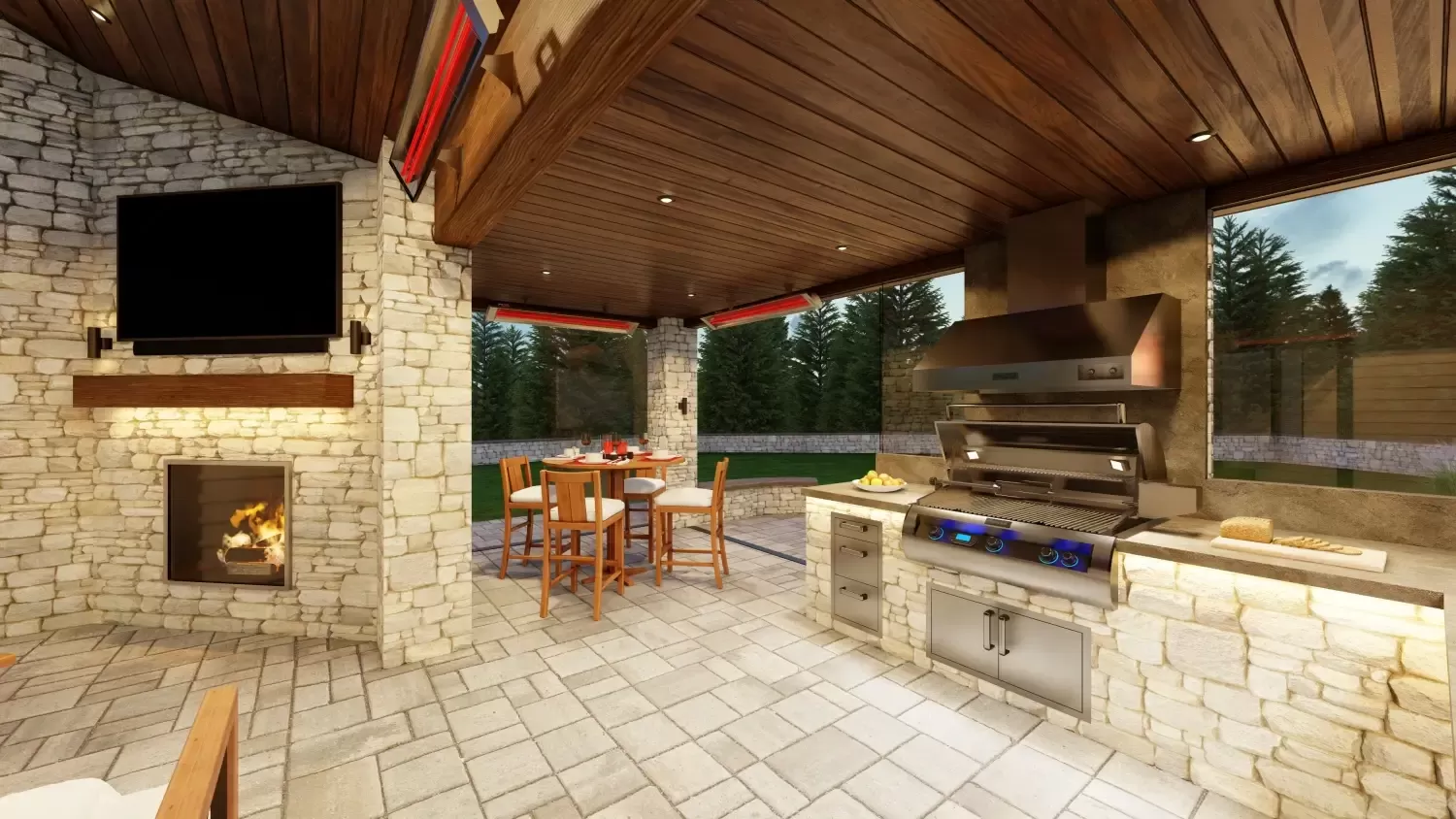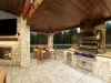 Deluxe outdoor kitchen with overhead venting and wrap-around counter