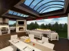 So we began by opening up the inside of the home with 3 separate glass bifold door systems. One from the master bedroom, the kitchen, and one 24ft wide bifold in the living room to create a dramatic and seamless integration to the brand new four-season outdoorliving spaces.