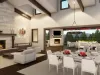 Beyond the fire bar is a wonderful dining area that is accessible straight from the kitchen that is perfect for any meal or company.