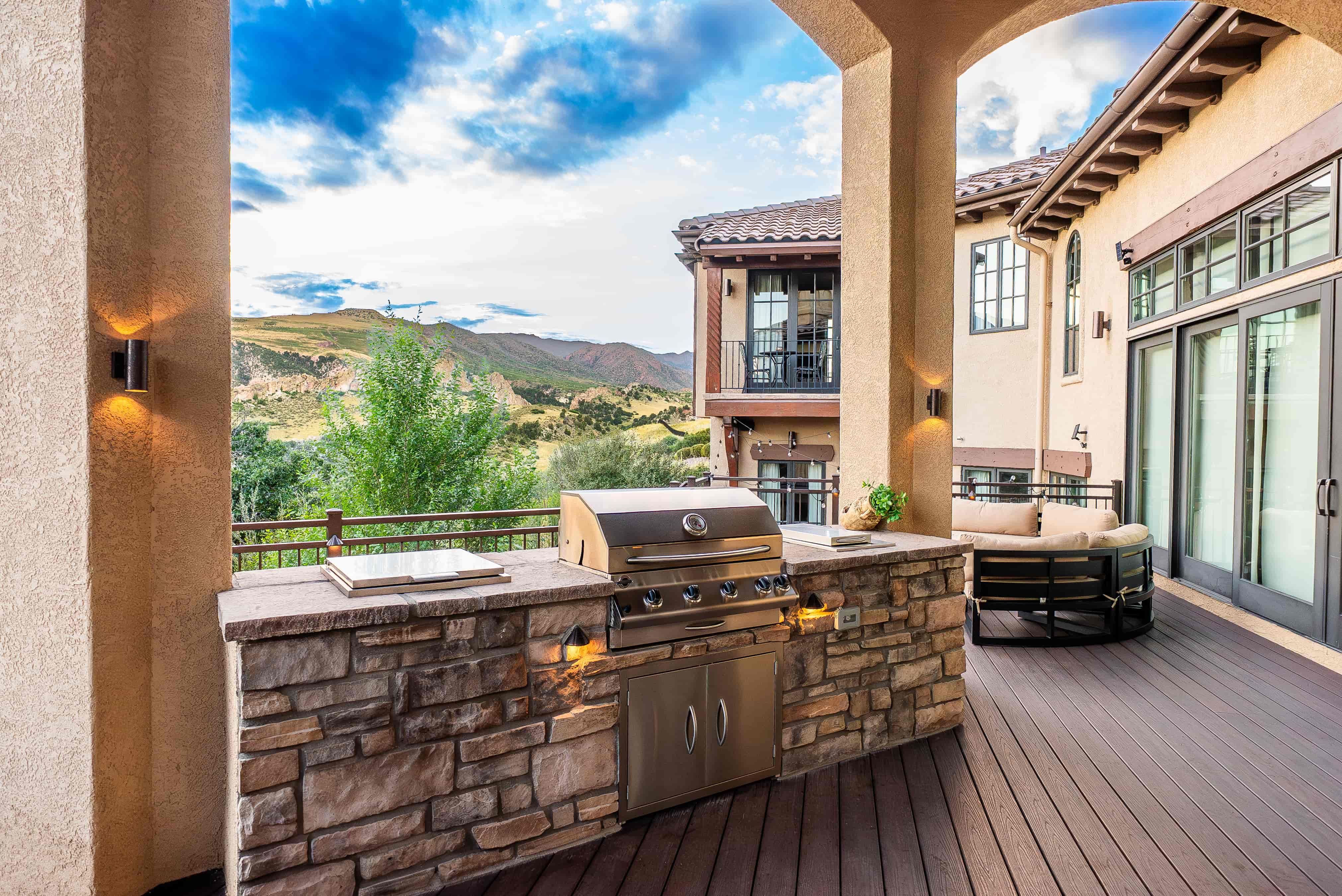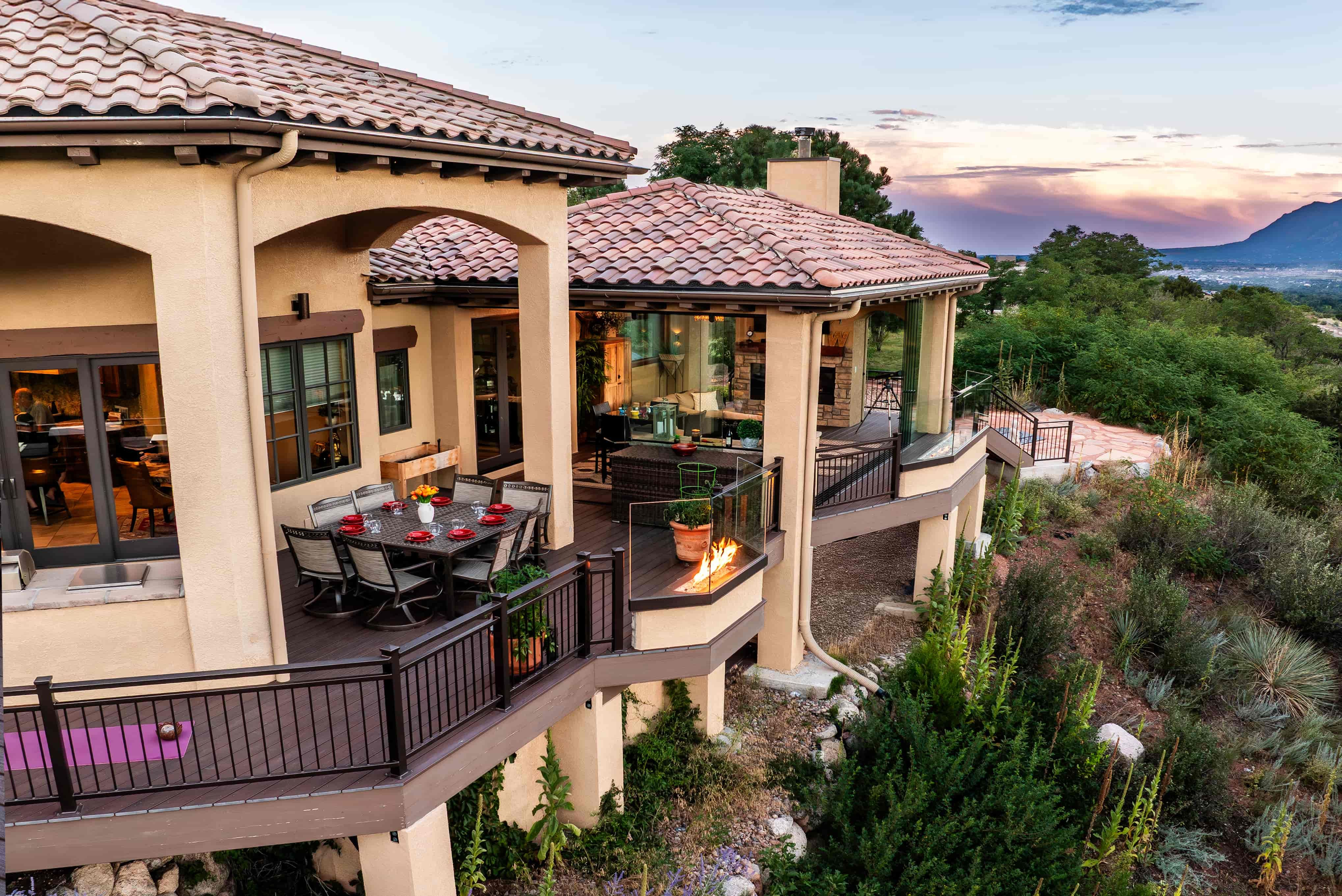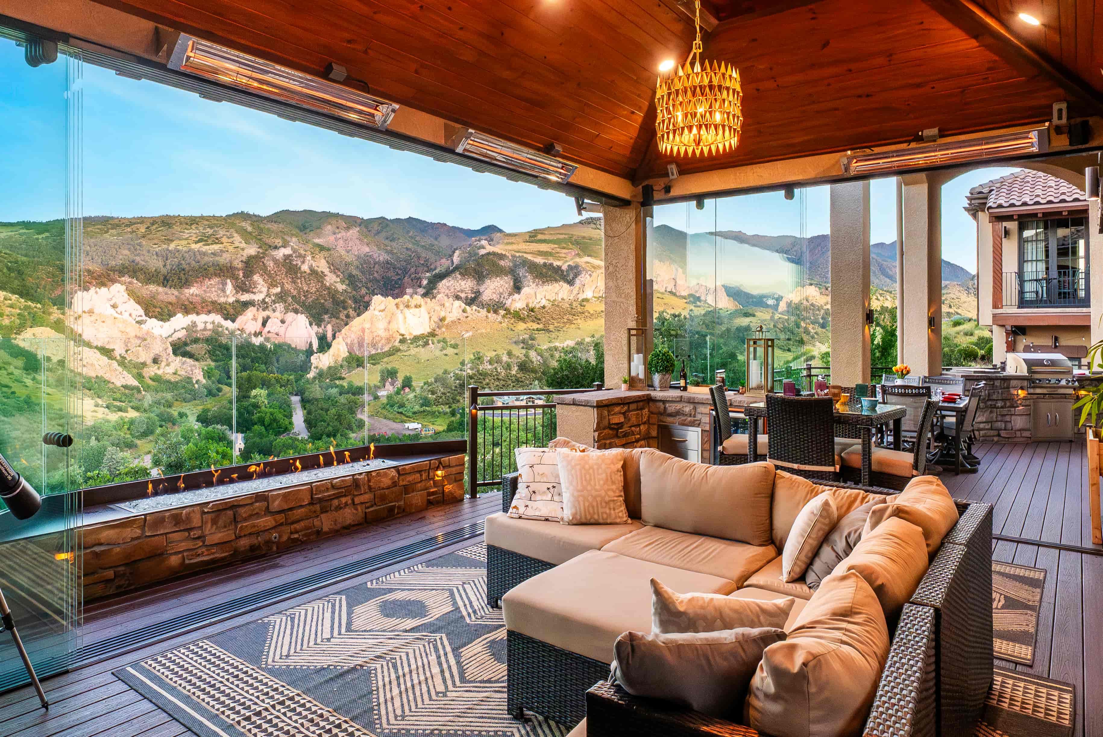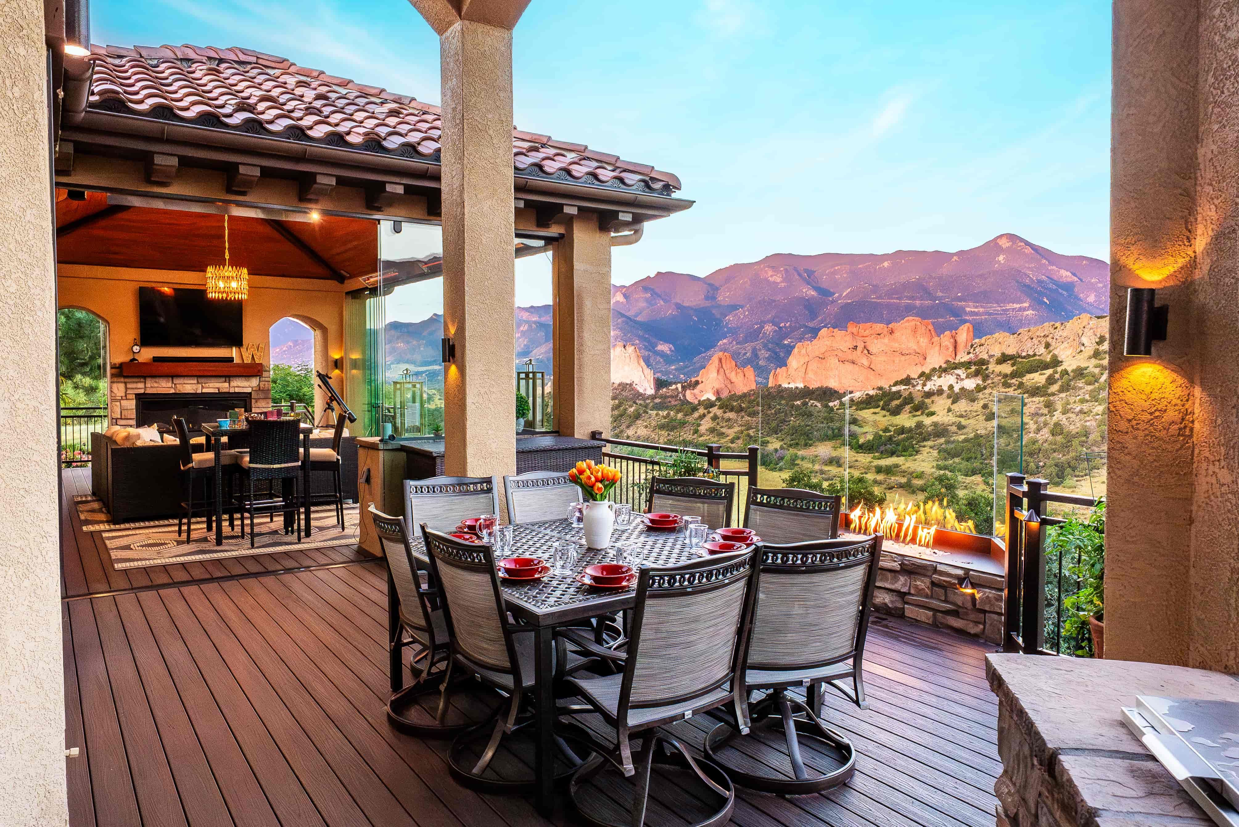 This beautiful Garden of the Gods home had a breathtaking view but lacked a way to enjoy it for a majority of the year. They needed a space that would amplify their view and create a warm and inviting area for soaking in the natural beauty of Colorado. By tearing out an existing interior wall and replacing it with a large, dramatic accordion door, we accomplished a seamless integration between their indoor and outdoor living areas. Their new custom Outdoor Space features a climate-controlled lounge area, multiple fire features, and full-glass walls to make this the perfect gathering place every day of the year.